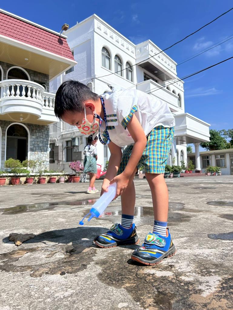 邀請幼兒運用不同的灑水器進行(和水玩創作)的繪畫遊戲 (154)