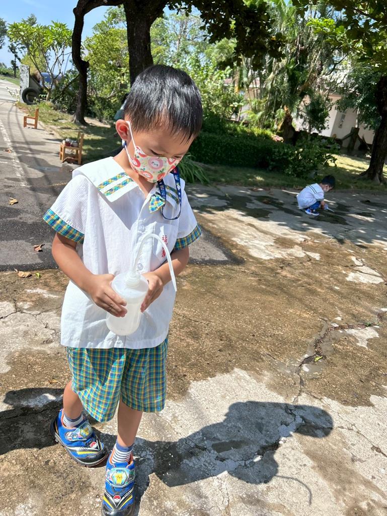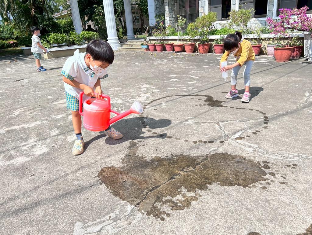 邀請幼兒運用不同的灑水器進行(和水玩創作)的繪畫遊戲 (160)