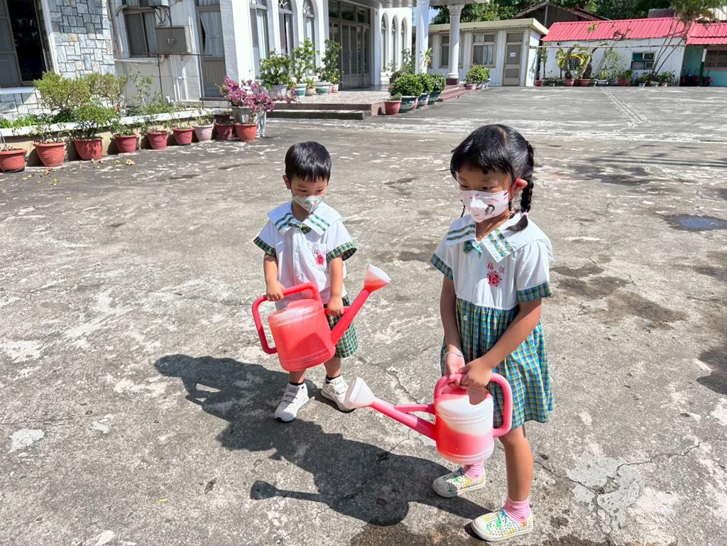 邀請幼兒運用不同的灑水器進行(和水玩創作)的繪畫遊戲 (123)