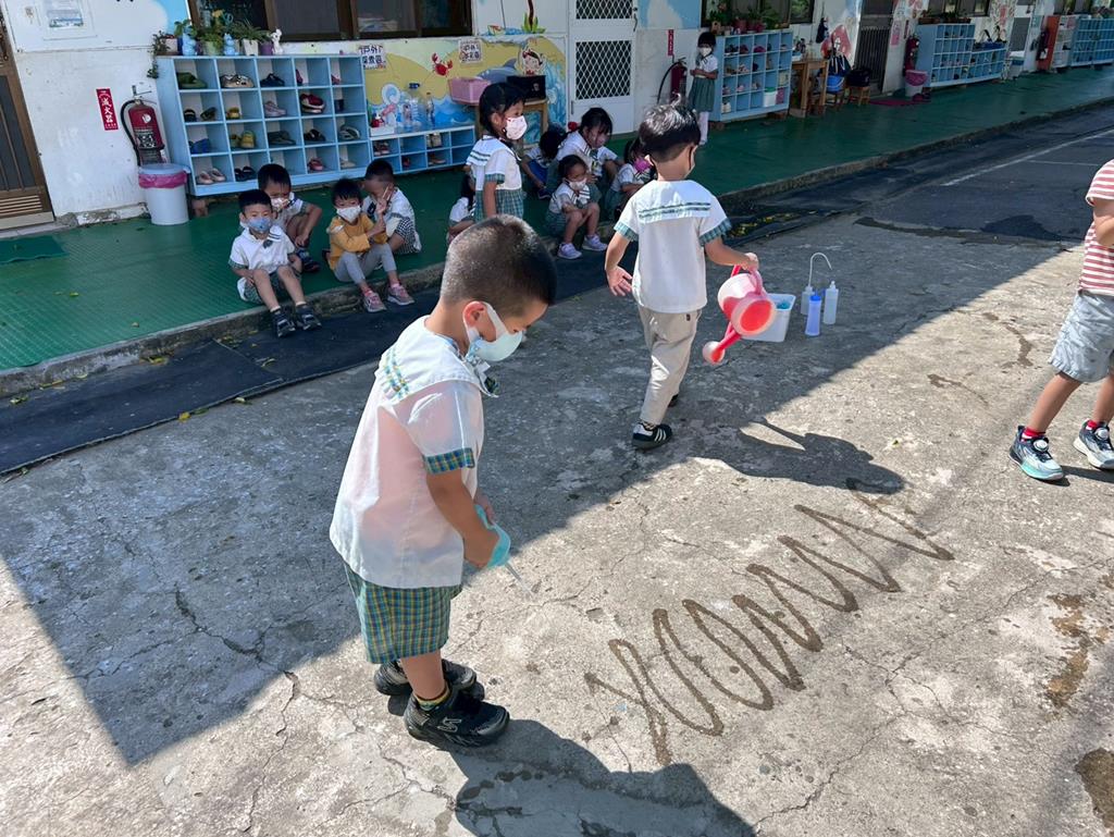 邀請幼兒運用不同的灑水器進行(和水玩創作)的繪畫遊戲 (114)