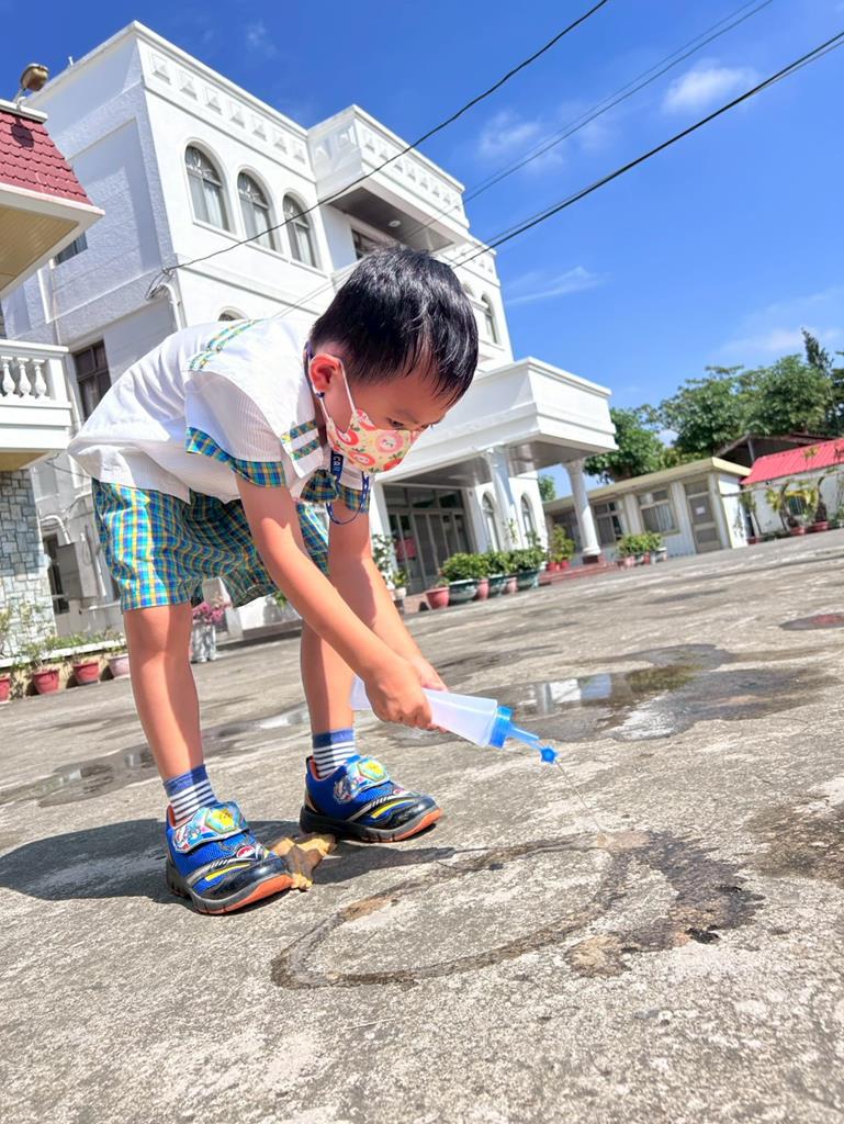 邀請幼兒運用不同的灑水器進行(和水玩創作)的繪畫遊戲 (85)